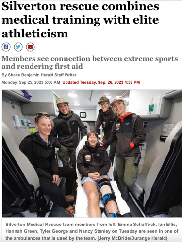 Currently, I work as a medical professional for Silverton Medical Rescue, a Search and Rescue + Ambulance service in the remote Silverton, Colorado. I am currently an EMT in Paramedic school, who enjoys ultra running and quality time with the people I love.